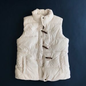 Never-worn white GAP puffer vest. Wooden toggles + zipper. No perfumes or fragrances in house. Smoke-free, pet-free.