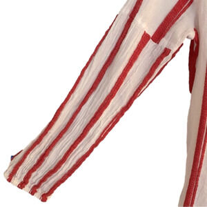 GAP Split V-Neck Striped Pullover Top, Long Sleeve, Red & White, Women's Size M