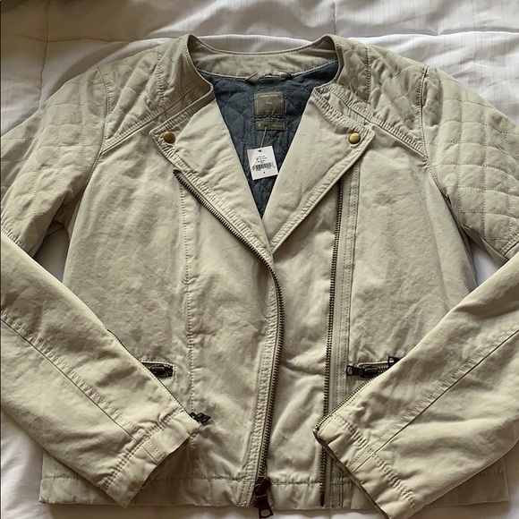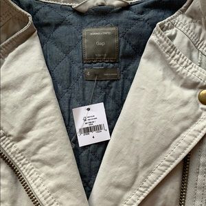Nice transition jacket, perfect for spring. Never worn, tag still attached. Can’t quite figure out the color. In the pictures it looks khaki, but I feel like it’s more of a very light gray.