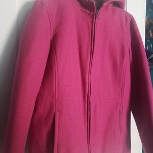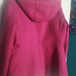 Raspberry color GAP wool Winter pea coat, color is darker in person than the pictures.