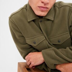 GAP Recycled Arctic Fleece Overshirt Army Jacket Green S Nwt