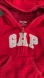 Cozy red baby hoodie onesie with GAP logo. Perfect for keeping your little one warm.