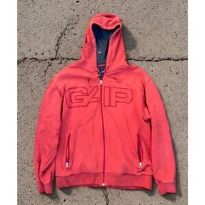 GAP Red Full Zip Hoodie Mens L Vintage Y2K Thermal Lined Baggy Fit Made in Korea