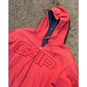Step back into early-2000s streetwear with this vintage GAP red hooded sweatshirt, size Large. Featuring a bold raised GAP logo, full zip closure, and a thermal waffle lining, this hoodie brings cozy comfort and classic Y2K nostalgia.