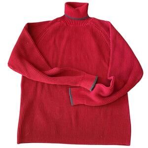 GAP Red Ribbed Turtleneck Sweater Women’s Large Cotton Knit Pullover