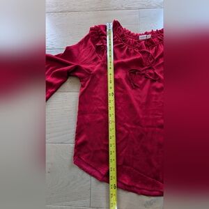 Elegant red blouse with ruffle accents. Soft and comfortable. Perfect for everyday wear.