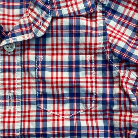 This GAP button down shirt features a vibrant red and blue color scheme, perfect for adding a pop of color to any casual outfit. Made from lightweight fabric, it ensures comfort and breathability for everyday wear.