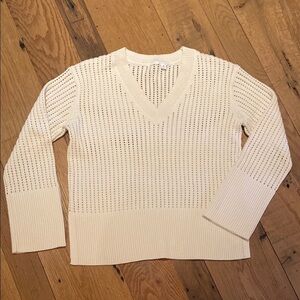 GAP Relaxed Crochet V-Neck Sweater Ivory Cream XS
