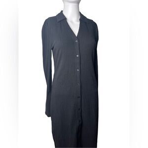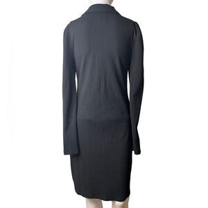 GAP Ribbed Collared V Neck Long Sleeve Dress Black Size Small