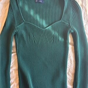 Stylish GAP green ribbed long sleeve top. Light weight sweater material. Perfect for casual wear or dressed up & holiday parties!