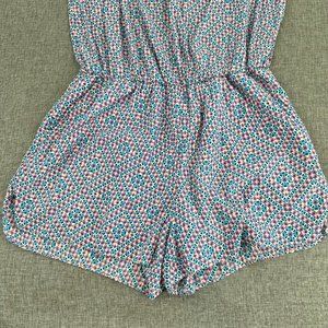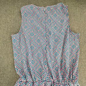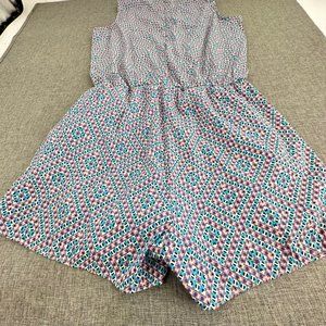 GAP Romper Large Elastic Waist Blue Pink Red White Round Neck Sleeveless Has been washed & Ready to wear Lined Zipper Closure 20.10" pit to pit 33.5" Length 14" from waist to bottom 3" Inseam Great Pre-Owned Condition bin 44 - 0903