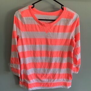 Gap FAVORITE FAVORI Round Neck White & Coral Striped Pullover Shirt Women's Size small