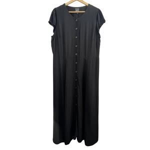 GAP Rounded Neck Button Front Black Cap Sleeve Flowy Midi Dress, size 14
