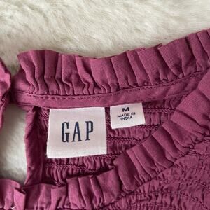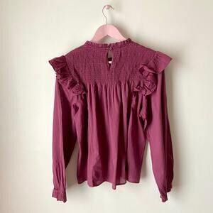 Deep pink lightweight ruffly long sleeve blouse by GAP. Great preowned condition. Size medium. Measurements in photos.