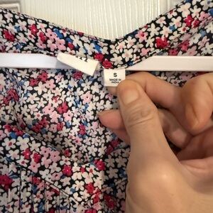 This elegant blouse from GAP showcases a delightful combination of puff sleeves and a peplum silhouette, enhanced by ruffled details. The vibrant pink and red colors bring a lively touch to the design, making it a standout piece for any occasion. Its cap sleeves and airy fabric ensure comfort and style throughout the day. Only worn twice and is in great condition.