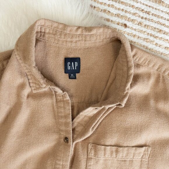 GAP SHIRT MENS SZ XL CAMEL TAN 100% COTTON BUTTON DOWN LONG SLEEVE COLLAR POCKET