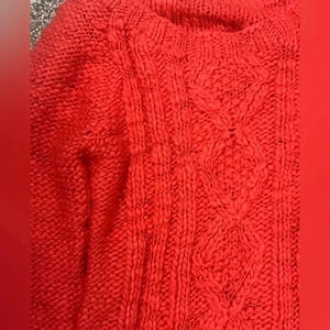 Gap Sweater Orange Supersoft knit with ribbed trim. Long sleeves. Crewneck. Cable knit detailing throughout wool and acrylic material excellent condition measurements in pics