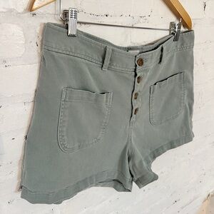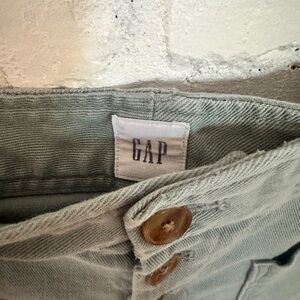 Classic and comfortable GAP utility shorts in a soft sage green color. Featuring a high-rise fit, button fly closure, and roomy front and back patch pockets. Minimal pilling at inner thighs (see photos), otherwise in great pre-owned condition.