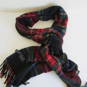 GAP Scraf Men's Tartan Plaid Black/Red 100% Wool Made in Italy Cozy Comfort