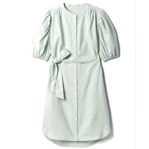 GAP Seafoam Green Linen-Cotton Mini Shirtdress Button Front Tie-Belt NWT MED