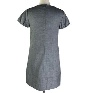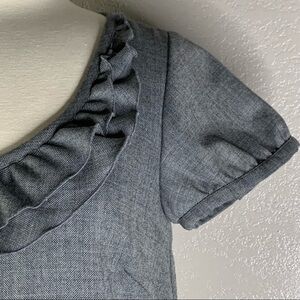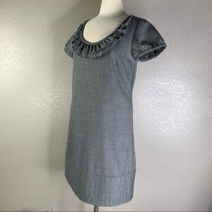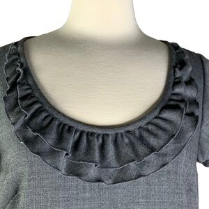 GAP Sheath Dress Size 8 Gray Wool Blend Round Neckline Ruffle Detail, Pockets
