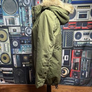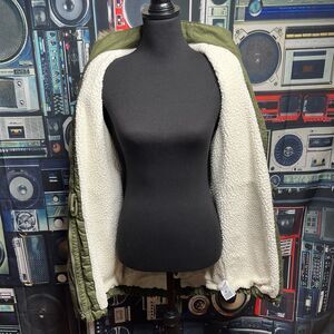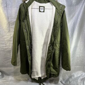 GAP Sherpa Army Green Lined Parka Coat w/ Hood Fleece Lining Size Small