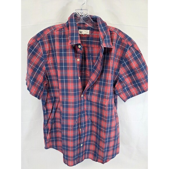 GAP Shirt Mens L Red Blue Check 100% Cotton Flannel Twill Standard Fit Button Up