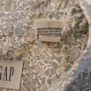 GAP Shirt Women Small Green White Floral Print Long Sleeve Button Down