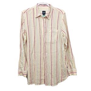 GAP Shirt Womens Large Linen Blend Long Sleeves Striped Button Up Blouse Pocket.