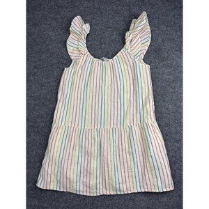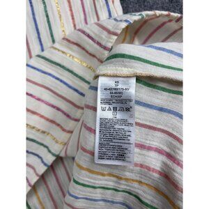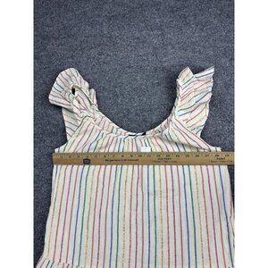 GAP Shirt Womens XS White Multicolor Metallic Stripe Ruffle Sleeve Peplum Top