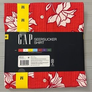 GAP Short Sleeve Button Down Shirt Seersucker Mens Medium Red Floral NWT