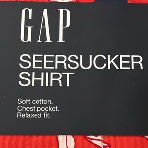 Stylish red floral shirt perfect for casual outings. Features a vibrant design for a standout look. Brand new with tag, never worn, Gap, Men’s size Medium, Short sleeves, button down, 100% cotton, seersucker, relaxed fit, casual,machine washable