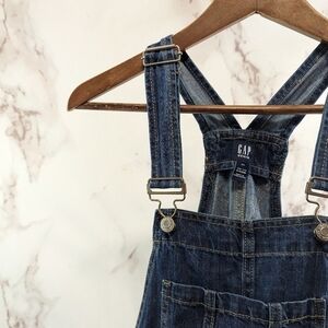 GAP Shortalls Womens XS Short Overalls Denim Jean Dark Medium Cuff Bermuda