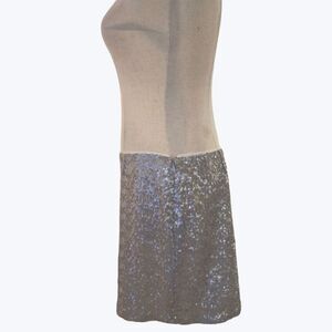 Shine bright with this elegant silver sequin skirt. Perfect for a night out or special occasion, this skirt adds a touch of glamour to your wardrobe.