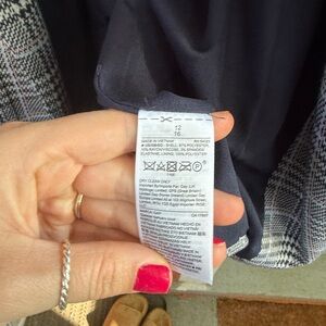 GAP Single Breasted Long Line Blazer Jacket Navy Blue White Plaid Stretch 12