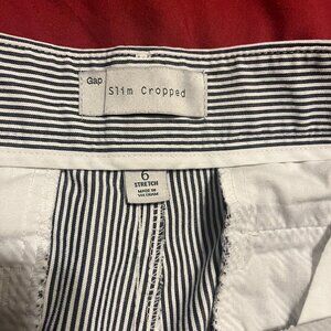 Cute! GAP women's size 6 slim cropped stretch striped pants. Like new condition. 68% cotton, 29% polyester, 3% spandex.
