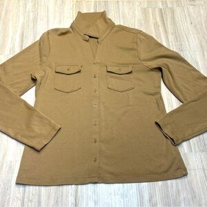 GAP Size L Long Sleeve Utility Shirt Chino Beige Collared Button Down Pockets