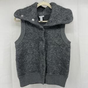 GAP Size Small Womens Vest Alpaca Wool Blend Gray Snap Buttons Ribbed Fuzzy