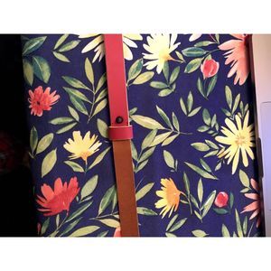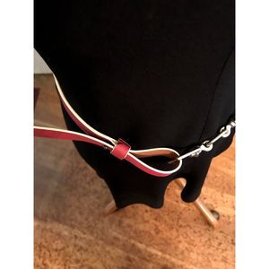 Very pretty belt that will dress up any plain outfit!! Wear it with brown, black or red!!! You can see a small black spot on the top back side of the belt. The bottom and the top of the belt are white.