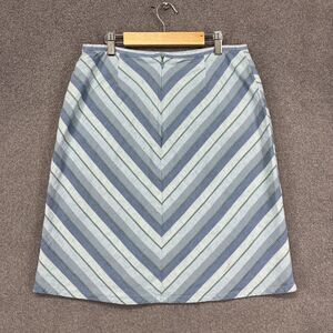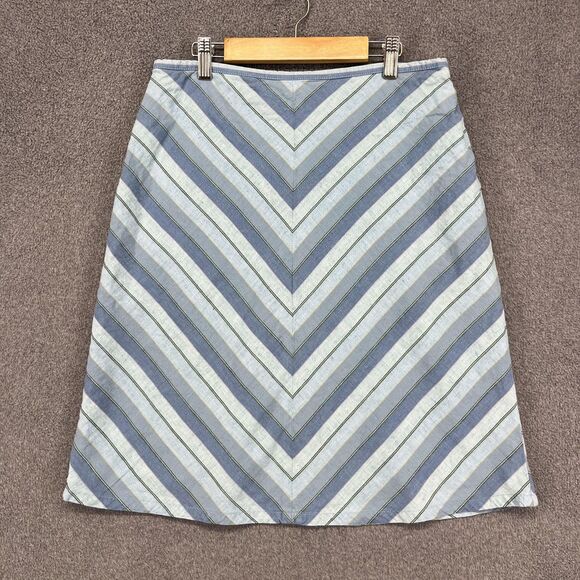 GAP Skirt Womens 6 Blue White Chevron Stripe Linen Cotton A Line Pockets Summer