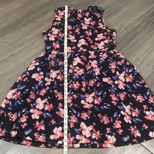 GAP Sleeveless 100% Cotton Navy Blue Floral Drawstring Waist Dress