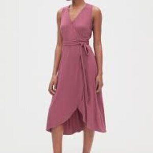 GAP knit wrap midi dress. Sleeveless style that's a must have essential for your capsule wardrobe! Painted Rose pink rayon spandex. Measures 19" underarm seam to seam. 19" waist unstretched (adjustable). 32" side length from waist/tie.