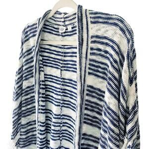 GAP Sleeveless White/Navy Stripe Sleeveless Fringed Cardigan Size S (fits L)