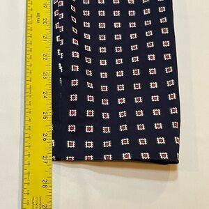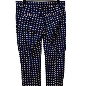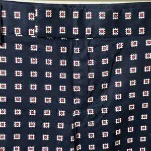 NWOT. Slimming and Stretching! Stylish navy cropped pants with white and red square pattern. Perfect for casual or office wear. Comfortable fit.