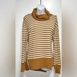 GAP Soft Spun Knit Cowl Neck Top. Tall.Long Sleeves.Side Vents.Brown&White. Mustard and white color