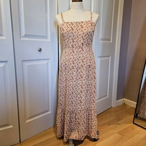 Smooth rayon weave, tank adjustable straps, tiered hem. Perfect summer or resort dress. I bought it from GAP, wore a few times. EUC.