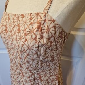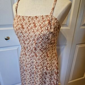 GAP Squareneck Fit And Flare Midi Dress Geo Print Size 10. Color is officially brown and white but it is really an orangey brown and cream.