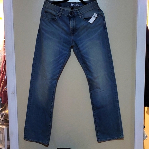 NWT GAP Jean's blue in color with faded look through out jeans. size 31x32 men's jeans wide leg. Inseam 31in Rise 10in. Waist 15in.