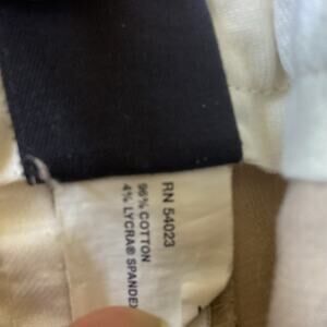 Light tan colored dress pants by GAP in good preowned condition. Light staining on inner waist. Please see last image. No other flaws.