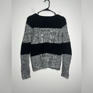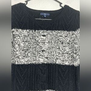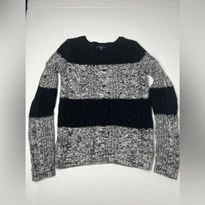 GAP Stripe Woven Knitted Color Block Wool Blend Sweater Black Gray Crewneck Sz S